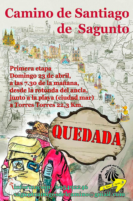 L'Associació Cultural d'Amics del Camí Santiago des de Sagunt es presenta en societat el 21 d'abril a les 19:00 hores en el Centre Cultural Mario Monreal. Durant l'acte esta agrupació d'aficionats a peregrinar llargues distàncies explicarà el projecte que estan desenvolupant amb l'Ajuntament de Sagunt i que consistix a connectar el municipi amb Santiago de Compostel·la mitjançant una sèrie de trams que podran recórrer-se a peu i amb bicicleta. Així mateix, descriuran el traçat de la primera etapa del recorregut, mostraran la credencial que avala el pelegrinatge i les infraestructures realitzades en este primer tram de 22,3 quilòmetres.