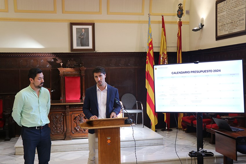 El regidor d'Hisenda, Toni Iborra, ha anunciat este matí que l'Ajuntament celebrarà un ple extraordinari el pròxim 23 de novembre per a aprovar la proposta de pressupost municipal de 2024. Acompanyat pel regidor de l'Equip de Govern, Roberto Rovira, també ha detallat les dates en què presentaran la proposta al Consell Econòmic i Social (CES), a la resta de grups polítics en les comissions informatives i a la ciutadania en les audiències públiques.