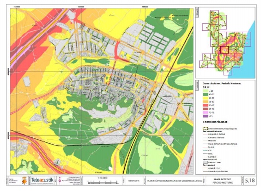 El Pla Acústic Municipal ha estat exposat públicament en la web de l'Ajuntament de Sagunt durant un mes perquè tots els veïns i veïnes pogueren realitzar les aportacions i mesures pertinents. Este pla consta de dues figures, en primer lloc, el mapa acústic que està disponible públicament perquè la població puga conéixer els índexs de qualitat acústica dels carrers i, en segon lloc, la proposta d'uns programes d'actuació quant a mesures que puguen ajudar a obtindre uns millors nivells sonors en el municipi.