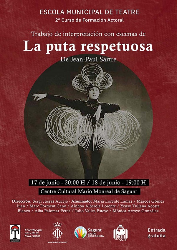 El 17 i 18 de juny serà el torn del 2n curs, el 17 serà a les 20 hores i el 18 a les 19 h. En esta ocasió representaran escenes de La puta respetuosa de Jean-Paul Sartre, en el Centre Cultural Mario Monreal de Sagunt.