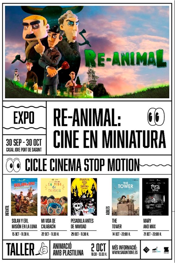 A més d'este acte, l'stop motion serà protagonista a l'octubre de la programació de cinema infantil i d'adults, per a això s'han programat cinc pel·lícules. Les pel·lícules del cicle infantil tindran lloc a les 11:30 h i són les següents: Solan y Eri, misión en la luna (el 15 d’octubre); Mi vida de calabacín (el 22 d’octubre); i Pesadilla antes de navidad (29 d’octubre). El cicle d’adults comptarà amb The tower (14 d’octubre) i Mary and Max (21 d’octubre), ambdues projeccions a les 22 h. Així mateix s'ha programat un taller infantil per a diumenge que ve dia 2 d'octubre, que ja ha cobert totes les seues places.
