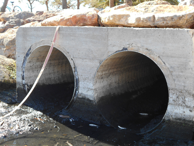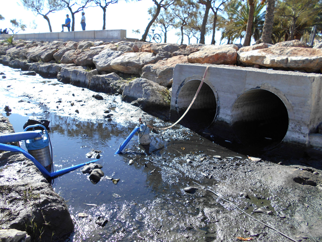 Açò ho corrobora la comprovació d'estanqueïtat en el tram de pluvials inspeccionat prèviament amb càmeres de televisió. A més, fotografies preses el dia de la prova mostren la presència de peixos, la qual cosa prova que l'origen de l'aigua no és en cap cas fecal.