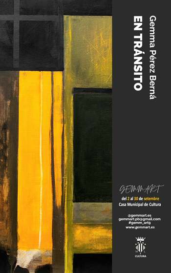 La Casa Municipal de Cultura acollirà del 2 al 30 de setembre l'exposició En Tránsito de Gemma Pérez Berná. Esta mostra de pintura abstracta està composta per 33 quadres i realitza un recorregut per l'evolució natural de l'expressió de l'artista a través de la pintura, des de l'inici fins hui.
