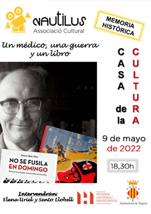 Esta vesprada a les 18.30 hores a la Casa Municipal de Cultura, l'Asociación Cultural Nautilus en col·laboració amb la regidoria de Memòria Històrica, abordarà el tema de la Memòria Històrica, parlant sobre el doctor Pablo Uriel i les seues memòries de la guerra, que van quedar recollides en el seu llibre No se fusila en Domingo, prologat per Ian Gibson.