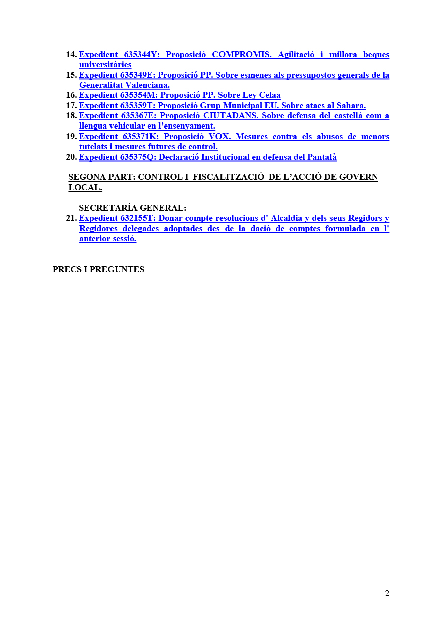 L'ordre del dia de la sessió ordinària del ple és el següent: