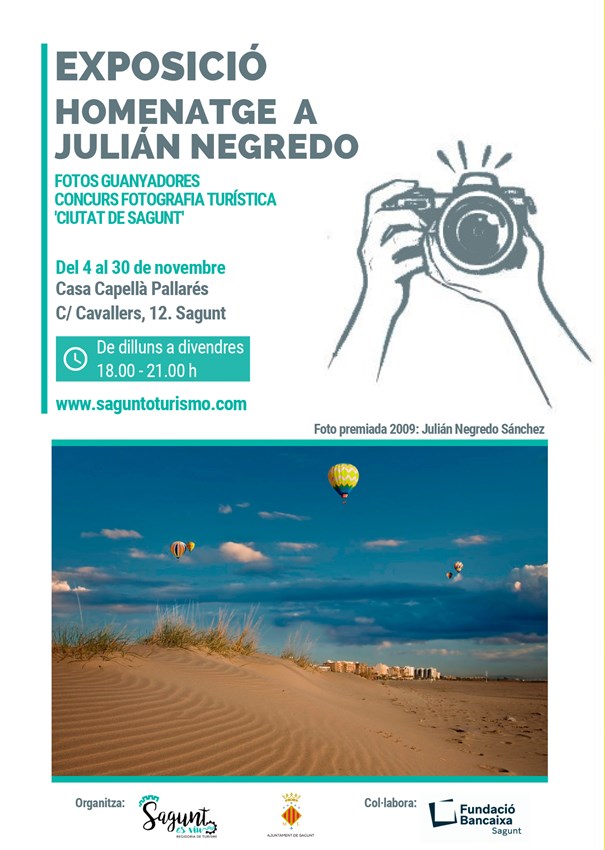 La Delegació de Turisme de Sagunt organitza, en col·laboració amb la Fundació Bancaixa de Sagunt, una exposició homenatge a Julián Negredo Sánchez, un dels fotògrafs que més premis ha aconseguit en el Concurs de Fotografia Turística ‘Ciutat de Sagunt’.