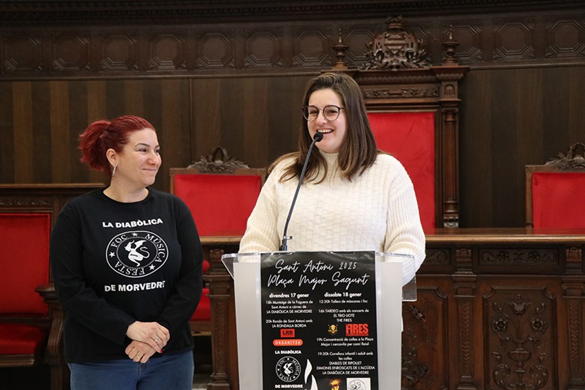 En la roda de premsa de presentació de la programació de Sant Antoni a la plaça Major han participat la regidora de Festes i Cultura Popular, Patricia Sánchez; i la presidenta de La Diabòlica de Morvedre, Cristina Rodríguez.