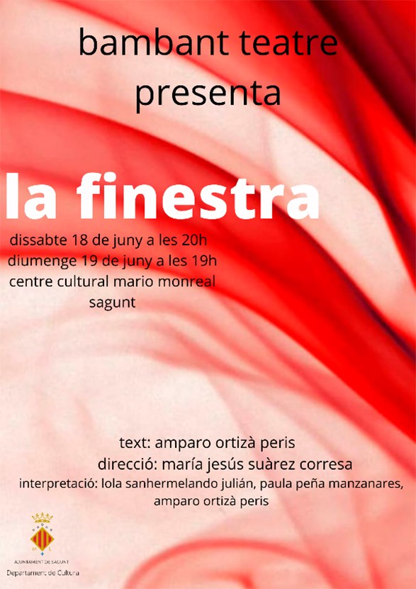 L’obra teatral La Finestra, de la companyia Bambant Teatre, és un drama social apte per a tots els públics. La representació tindrà lloc durant dos dies. Per una banda, este dissabte, 18 de juny, a les 20.00 hores i, per altra, el diumenge, 19 de juny, a les 19 hores. Les dos funcions tindran lloc al Centre Cultural Mario Monreal de Sagunt. Esta obra és en valencià i té una duració de 80 minuts. Així mateix, l'entrada té un preu de 7 euros, que es pot comprar a través de servientradas.