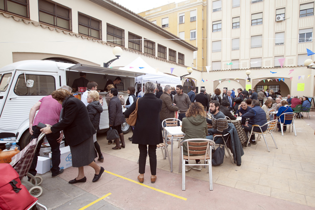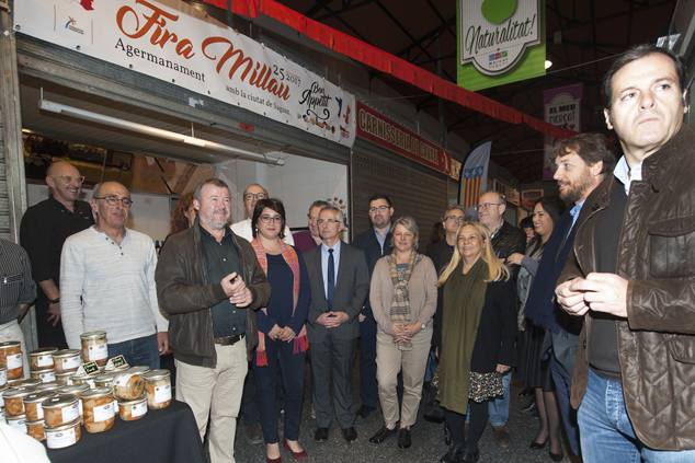 Les activitats van continuar en el pati exterior del mercat, amb música francesa en directe oferida per músics procedents de Millau, una parada de menjar itinerant amb degustacions de productes de la localitat francesa com el famós formatge rocafort, els trenels, una especialitat de carn a la planxa amb tòfona, i l’aligot que es va cuinar a la vista dels assistents.