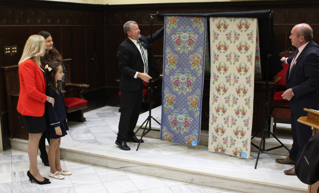 El saló de Plens de l'Ajuntament de Sagunt va ser el lloc triat per a lliurar a les falleres majors de la Federació Junta Fallera de Sagunt de 2018, Mª del Mar Gimeno López i Andrea Escribá Fernández, les teles dels vestits oficials. Enguany, i per primera vegada, lluiran una tela exclusiva de seda que ha rebut el nom Sagunt. També se'ls ha lliurat els mantons, tant a les falleres majors com a les respectives corts d'honor.