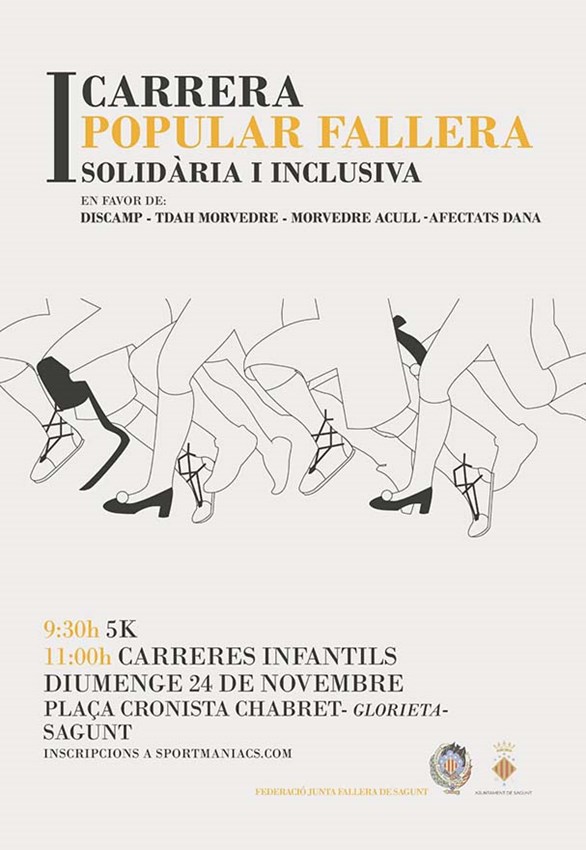 La plaça Cronista Chabret serà este diumenge el punt d'eixida i meta de la I Carrera Popular Fallera Solidària i Inclusiva, que organitza la Federació Junta Fallera Sagunt (FJFS) junt amb la col·laboració de l'Ajuntament de Sagunt i de l'empresa Holcim.
