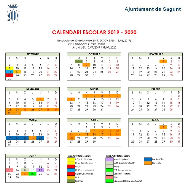 En la resolució comunicada a l’Ajuntament de Sagunt s'indica que esta modificació suposa que es declara lectiu i, per tant, últim dia del curs el divendres 19 de juny per a l’Educació Infantil i Primària; el dimecres 17 de juny per a l'Educació Secundària Obligatòria, Batxillerat, Formació Professional, l'alumnat que cursa programes formatius de Qualificació Bàsica i per als ensenyaments esportius i artístics de règim especial; el dijous 25 de juny per a l’alumnat que curse ensenyaments de Formació Professional Bàsica de segona oportunitat i per als ensenyaments d'idiomes, i el dilluns 15 de juny per a la Formació de Persones Adultes.