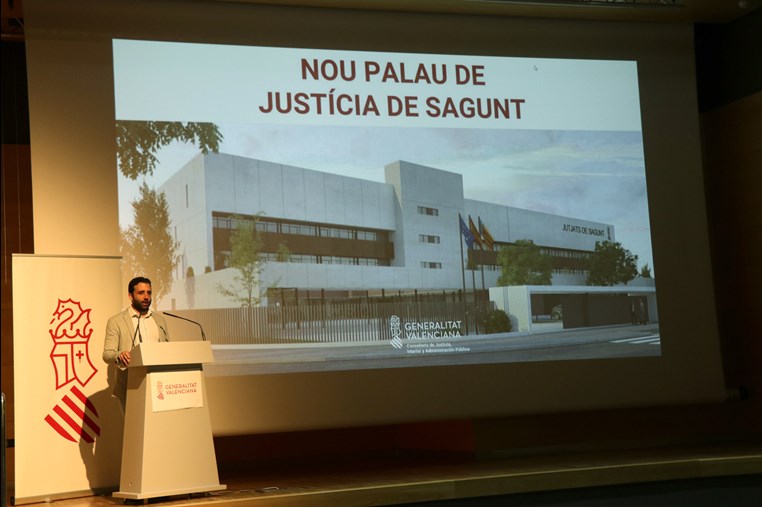La consellera de Justícia, Interior i Administració Pública, Gabriela Bravo, juntament amb l'alcalde de Sagunt, Darío Moreno, ha presentat este matí el projecte del nou Palau de Justícia de Sagunt. Este es construirà en una parcel·la cedida per l'Ajuntament de Sagunt que té 10.761 metres quadrats i entrarà en servici a principis de l'any 2026, després de vint mesos d'obres i una inversió de 24,2 milions d'euros. Atendrà una població de més de 90.000 persones repartida en 16 municipis en la futura avinguda de les Corts de Sagunt.