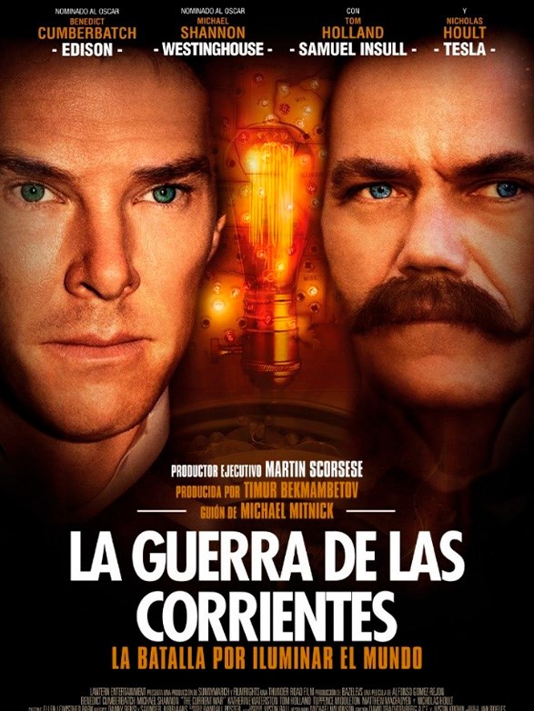 Este film té una duració de 103 minuts i es va estrenar en 2017. A la fi del segle XIX dos genis, Thomas Edison (Benedict Cumberbatch) i George Westinghouse (Michael Shannon), este últim al costat de Nikolai Tesla (Nicholas Hoult), competixen per a crear un sistema sustentable d'electricitat i poder comercialitzar-lo a tots els Estats Units en el que es coneix com la “guerra dels corrents”, una rivalitat entre tots dos en la dècada de 1880 pel control de l'incipient mercat de la generació i distribució d'energia elèctrica. El productor executiu d’esta pel·lícula és Martin Scorsese.