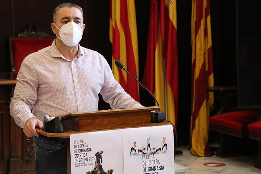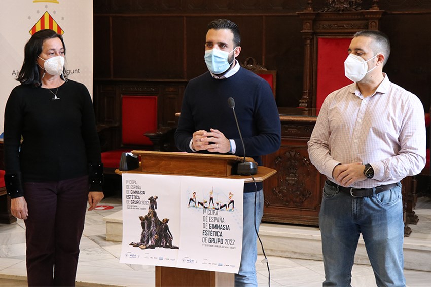 El pavelló del Poliesportiu José Veral acollirà este cap de setmana (12 i 13 de febrer) la I Fase de la Copa d'Espanya de Gimnàstica Estètica de Grup. Este matí s'ha presentat la competició a l'Ajuntament de Sagunt, a la qual han assistit l'alcalde, Darío Moreno, el regidor d'Activitat Física, Salut i Esports, Javier Timón i la directora de la competició, Elena Azpilicueta.
