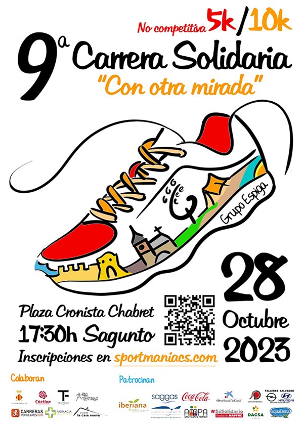 L'Ajuntament de Sagunt ha anunciat que la IX edició de la Carrera solidària ‘Con otra mirada’ es disputarà dissabte que ve, 28 d'octubre, a les 17.30 hores. Tots els beneficis d'esta iniciativa, impulsada pel Grup Espiga i en la qual col·labora la Regidoria d'Activitat Física, Salut i Esports, es destinaran a quatre projectes de voluntariat social pertanyents a Càritas i l'Associació La Casa Nova.