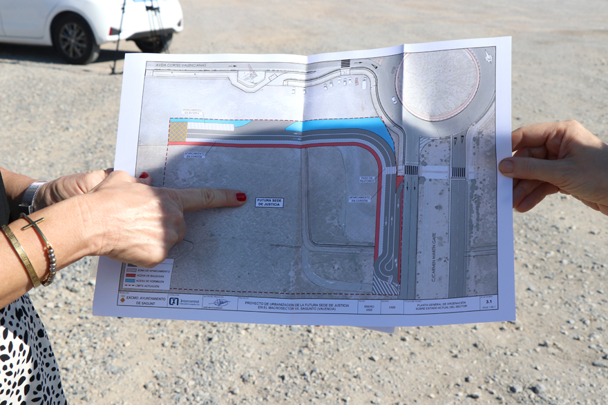 La consellera de Justícia, Interior i Administració Pública, Gabriela Bravo, ha visitat hui la parcel·la on es construirà la nova Ciutat de la Justícia de Sagunt, junt a l'alcalde de Sagunt, Darío Moreno, i altres autoritats. Un projecte que suposarà una inversió de prop de 14 milions d'euros per a traslladar els actuals jutjats a una nova seu, concretament en l'encreuament de la travessia Fausto Caruana amb el carrer Carmen Martín Gaite. El nou edifici tindrà entre 2 i 5 plantes per a complir les necessitats actuals però amb vista al futur i, a més, albergarà la seu de la fiscalia, l'oficina d'atenció a les víctimes o la unitat de valoració, entre altres dependències.