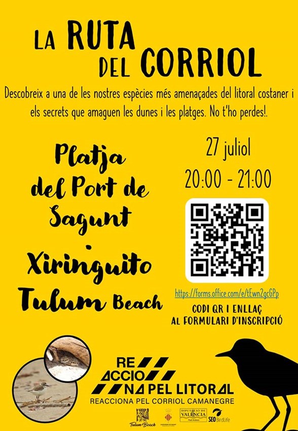 En esta iniciativa que s'engloba dins del projecte Reacciona pel Corriol, Reacciona pel Litoral col·labora la Diputació de València, la Sociedad Española de Ornitología (SEU/BirdLife) i el quiosquet Tulum Beach.