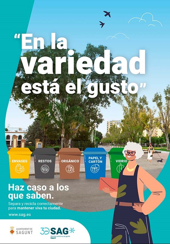 La Societat Anònima de Gestió de Sagunt (SAG) ha llançat una nova campanya a favor del reciclatge amb l'eslògan Haz caso a los que saben amb l'objectiu de conscienciar la ciutadania sobre la importància de separar els residus correctament mitjançant l'establiment d'un vincle emocional amb els habitants de la localitat, recorrent a expressions i ensenyaments de les persones més majors.