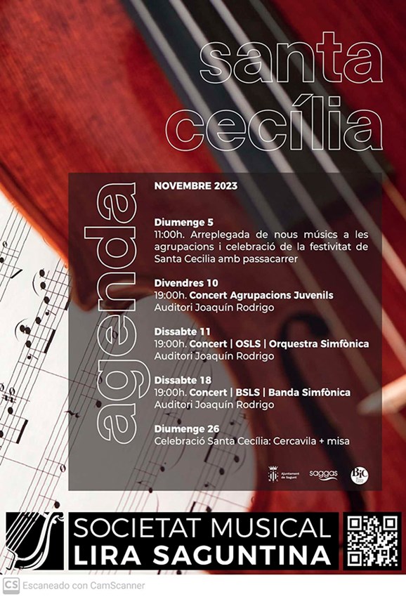 A més, la Banda Simfònica Lira Saguntina interpretarà el tradicional concert de Santa Cecilia amb obres de gran transcendència dins del repertori bandístic i que fan menció a la trajectòria històrica d'este conjunt musical. L'actuació està programada per al dissabte 18 de novembre a les 19 hores a l'auditori en la qual interpretarà totes les obres dirigides per Daniel Olmos Herrero.