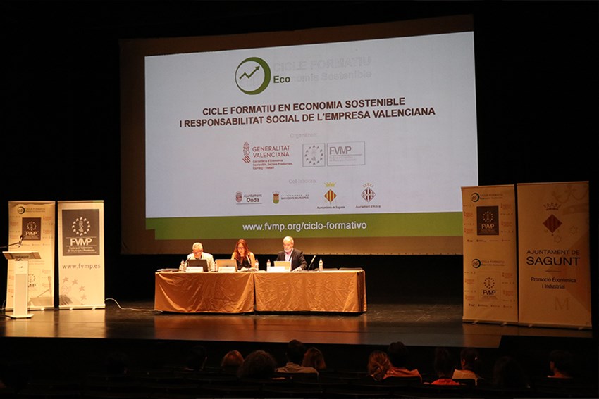 L'alcalde de Sagunt, Darío Moreno, ha inaugurat este matí, al Centre Cultural Mario Monreal, la tercera jornada del Cicle Formatiu en Economia Sostenible i Responsabilitat Social de l'Empresa Valenciana, organitzat per la Conselleria d'Economia Sostenible, Sectors Productius, Comerç i Treball juntament amb la Federació Valenciana de Municipis i Províncies (FVMP), que en esta tercera jornada ha comptat amb la col·laboració el departament de Promoció Econòmica i Industrial de l'Ajuntament de Sagunt. A més, también hi ha participat amb una ponència la tècnic del departament.