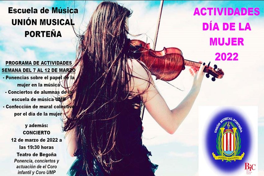 L'Escola de Música de la Unión Musical Porteña, presenta, dins dels esdeveniments que ha programat amb motiu del Dia Internacional de la Dona, un concert dissabte que ve 12 de març a les 19.30 hores en el Teatre de Begoña.