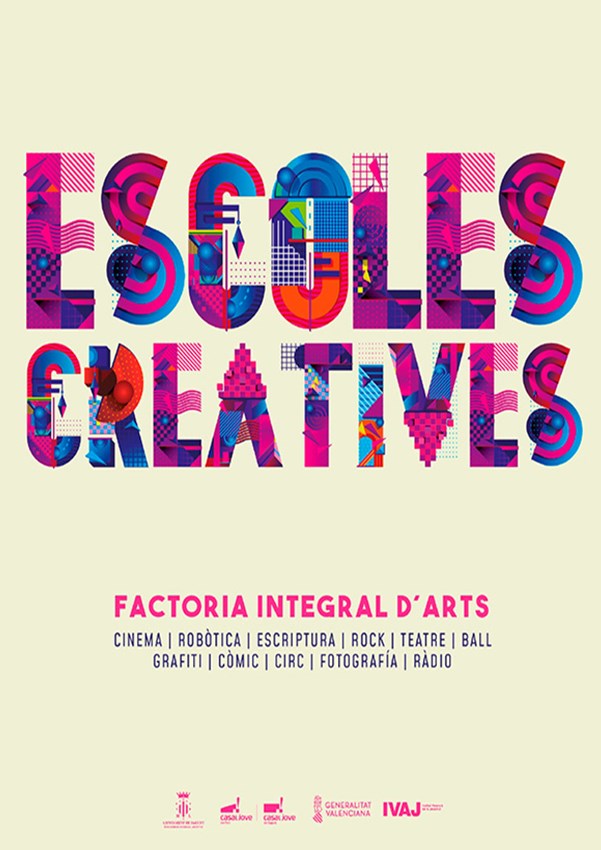 Les Escoles Creatives - Factoria integral d'arts són una iniciativa que s'emmarca dins del programa Cultura Jove de la Regidoria de Joventut i Infància de l'Ajuntament de Sagunt i les accions previstes pel departament van més enllà de la mera formació per a la creació, ja que el seu objectiu final és la dinamització sociocultural del municipi. A esta labor se sumen altres recursos i projectes com les sales d'assaig, els Lab creatius o el suport a diferents projectes culturals impulsats per col·lectius juvenils. En definitiva, es tracta de fomentar l'acció creativa de la ciutadania més jove apostant per la democràcia cultural, que en lloc d'espectadors crea ciutadania.
