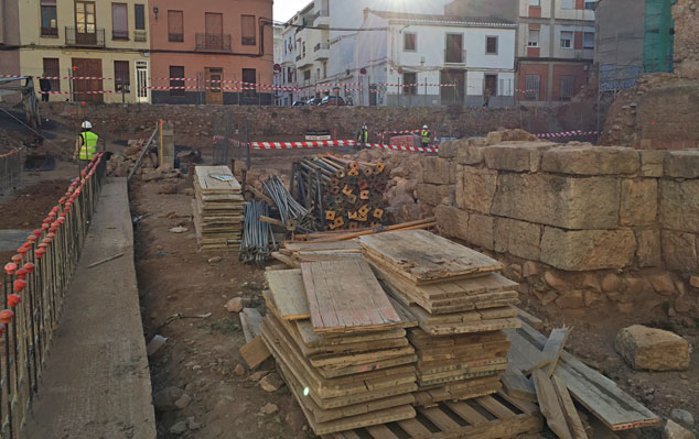 Recentment, s'han col·locat bastides en dos trams de les mitgeres i ja estan replantejats la major part dels murs de la plaça. També s'ha excavat una part important de la claveguera romana, que recorre el solar en direcció SO-NE cap al cantó del carrer Horts amb Ordoñez i es planteja la seua incorporació a la plaça per a la seua correcta museïtzació.
