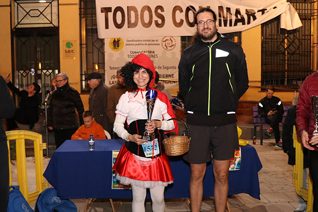 La carrera ha comptat amb la participació de l'alcalde de Sagunt, Darío Moreno, i del delegat d'Esports, Javier Raro, així com dels regidors de la Corporació Municipal, Javier Timón, José Manuel Tarazona, Guillermo Sampedro, Cosme Hernández i Sergio Muniesa. Les regidores María José Carrera, Natalia Antonino i Asun Moll també han estat presents en la celebració d'esta competició festiva i solidària. Una vegada han arribat tots els participants a la meta, l'alcalde i els regidors han entregat els premis al primer classificat masculí, Frances Cabrero, i a la primera classificada femenina, Luna Escrich, així com a les 3 millors disfresses individuals i grupals.