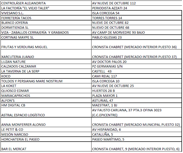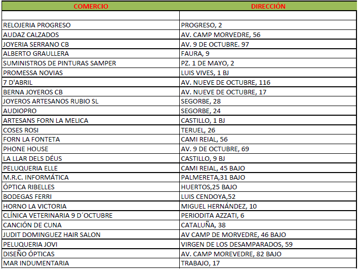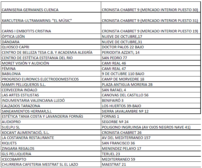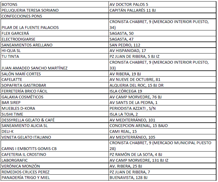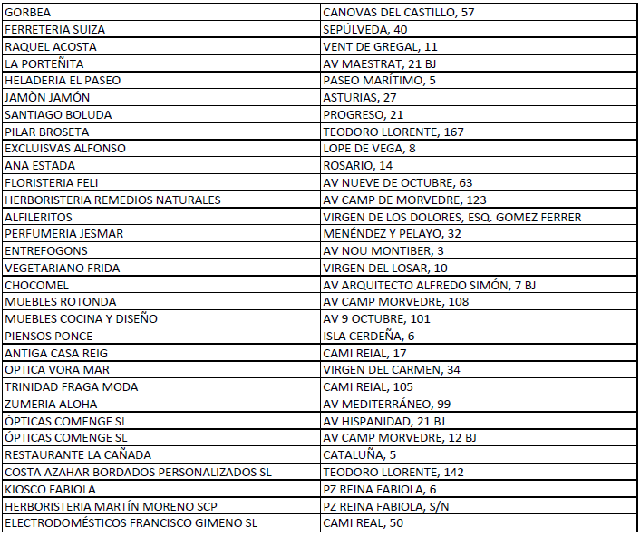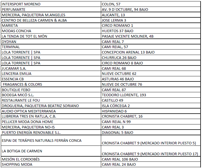 La Regidoria de Comerç i Mercats posa a la disposició de la ciutadania un llistat amb tots els establiments que han sol·licitat adherir-se a la Campanya de Dinamització del Comerç i Hostaleria Locals ‘Tu vals per a reactivar la nostra ciutat’. En total, més de 170 establiments participaran en la campanya amb la qual la clientela podrà guanyar premis en realitzar les seues compres.