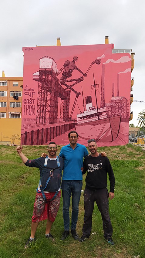 El mural de l'artista valencià Xelon en el marc de la VII edició del festival d'art urbà Més que Murs ja es pot contemplar en l'avinguda 9 d’Octubre, en el mur mitger que hi ha a l'altura del número 143 en l'encreuament amb el carrer Joan d'Àustria. Es tracta d'una obra que conjuga la temàtica habitual de l'autor, la ciència-ficció, amb el passat industrial del Port de Sagunt, lligat al moll de càrrega miner.