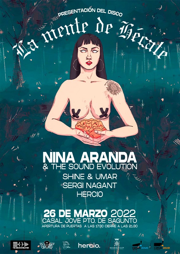 El concert comptarà amb la presència d'altres artistes convidats especials coneguts a la comarca com Shine + Omar, Herico i Sergi Nagant, que acompanyaran la cantant en l'escenari. A més, l'actuació de Nina Aranda tindrà, com ja és habitual, la companyia de Tato en els plats i bases. Quant al directe de Nina Aranda i The Sound Evolution comptaran amb una escenografia diferent, un directe que mostrarà els treballs antics de Nina i l'àlbum de La mente de Hécate, ‘autotune’ en directe per a este disc.