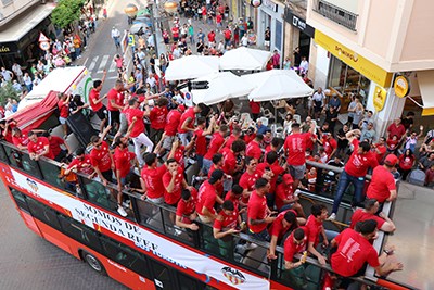 L'expedició de l'Atlético Saguntino ha tornat este dilluns a la vesprada al Nou Camp de Morvedre, procedent de Las Rozas, des d'on s'ha iniciat una rua amb autobús descobert pels principals carrers i avingudes de la ciutat, i l'itinerari de la qual ha recorregut l'avinguda Sants de la Pedra fins arribar a l'antiga carretera N-340 per a després enfilar el Camí Reial fins a la Plaça Major.