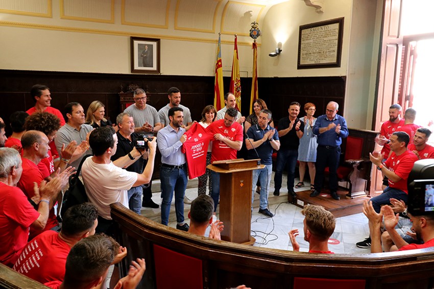 «Hi ha hagut moments complicats esta temporada però malgrat això us heu sabut reposar i estar al marge d'eixes circumstàncies, i en la part que us corresponia, amb el vostre treball diari en el camp, heu donat el màxim i fruit d'això és este meravellós ascens», ha valorat l'edil d'Esports referint-se a la plantilla, cos tècnic i directiva.