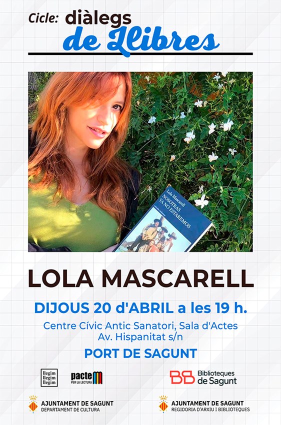L'escriptora valenciana Lola Mascarell és la convidada a la pròxima jornada de ‘Diàlegs de Llibres’, que tindrà lloc a les 19.00 a la sala d'actes del Centre Cívic Antic Sanatori de Port de Sagunt. Esta edició del cicle literari ha sigut organitzada pel departament d'Arxiu i Biblioteques i la Regidoria de Cultura amb motiu de la celebració del Dia del Llibre.