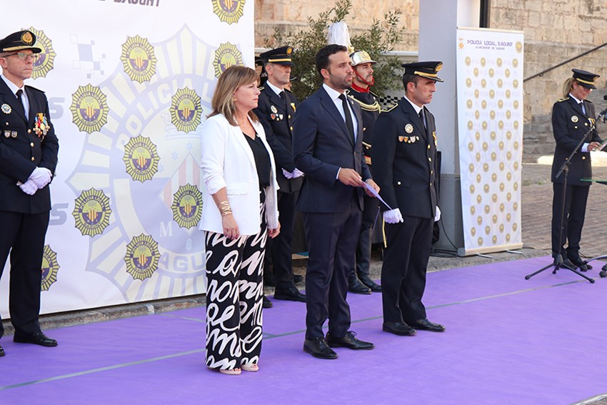 La Policia Local de Sagunt ha celebrat un any més la festivitat del seu patró, Sant Miquel. La plaça Major ha acollit l'acte en el qual s'ha reconegut el treball i el mèrit de diferents intervencions que han protagonitzat els agents i oficials de la Policia Local i de la Guàrdia Rural i la seua gestió i dedicació, així com la labor que durant anys han realitzat els agents jubilats. Prèviament a l'inici de l'acte, s'ha guardat un minut de silenci en memòria de Vicent Vayá Pla, Fill Adoptiu de Sagunt mort recentment als 85 anys.
