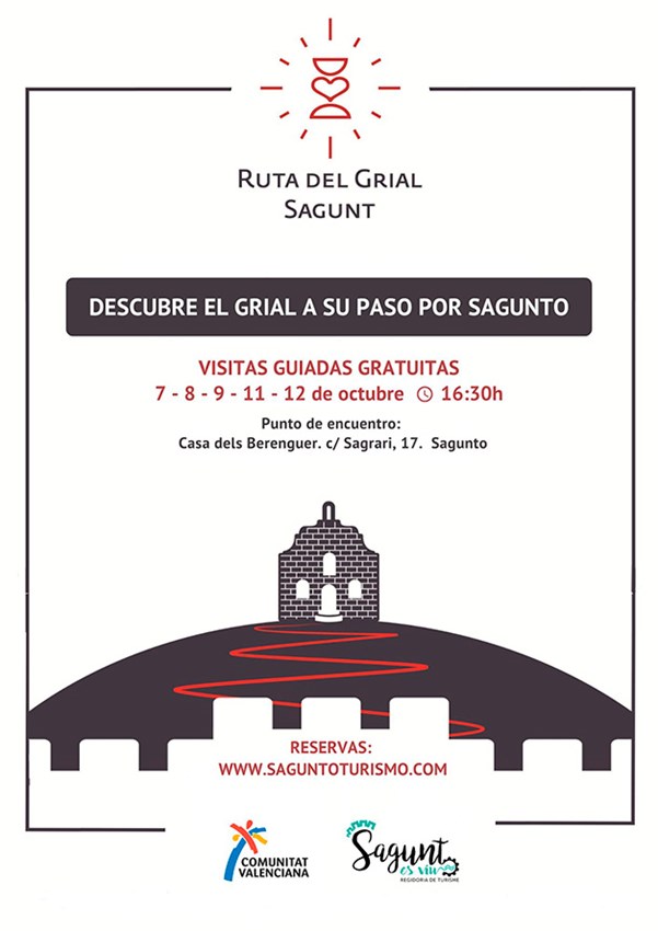Sagunt Turisme oferix visites guiades gratuïtes "Descobrix el Greal al seu pas per Sagunt" els dies 7, 8, 9, 11 i 12 d'octubre