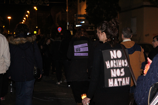 La manifestació va eixir el dissabte a les 18.30 hores de la vesprada de la Tinència d'Alcaldia del Port de Sagunt. En el seu recorregut per l'avinguda Camp de Morvedre, es va detindre en dos ocasions, una enfront de Correus i una altra en la rotonda de l'I.E.S. Eduardo Merello. En estos dos moments, una fila de dones vestides de negre i amb un ciri en la mà van cridar i es van tirar al sòl com si les estigueren assassinant. Tot seguit, es va dibuixar la seua silueta amb un guix en el sòl mentre la gent mirava els cossos simbòlicament sense vida.