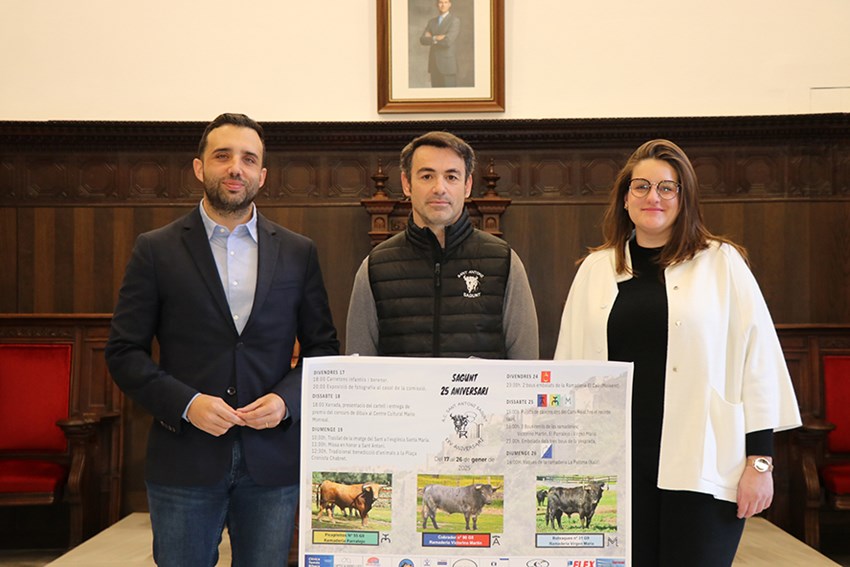 Per la seua banda, Monleón, en nom de l'associació saguntina, ha destacat que “és un any molt especial per a nosaltres perquè no és fàcil fer 25 anys i per això la programació serà especial, comptant amb ramaderies molt importants i amb la recuperació d'un acte que es feia antigament com és la pujada dels caixons dels bous cerrils pel carrer fins al recinte taurí”.
