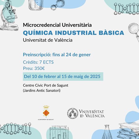 L'Ajuntament de Sagunt, en col·laboració amb la Universitat de València a través del seu vicerectorat de Formació Permanent, Transformació Docent i Ocupació, ha anunciat el llançament de la segona edició de la microcredencial en Química Industrial Bàsica. Este és un programa formatiu dissenyat per a dotar els estudiants dels coneixements essencials en química industrial i capacitar-los per a una inserció laboral exitosa en el sector. Este curs, que forma part de les iniciatives de formació contínua de la Universitat de València, respon a la creixent necessitat de professionals qualificats en un àmbit clau per al desenvolupament econòmic del territori.