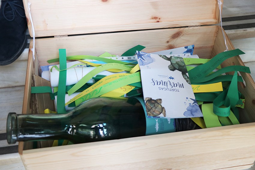 Sagunt disposarà de dos cofres que viatjaran entre els dos nuclis de població de la ciutat. La botella conté una etiqueta emulant la de les botelles de vi en la qual es pot llegir un missatge de sensibilització. L’acte de clausura serà la solta d'una tortuga a la platja de Sagunt el 23 de març, dijous, en el qual se celebrarà el Dia Mundial de l'Aigua que és el 22 de març.