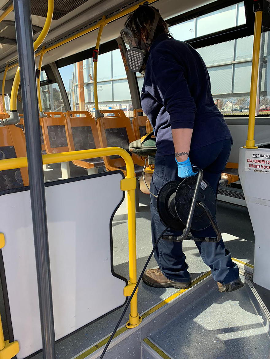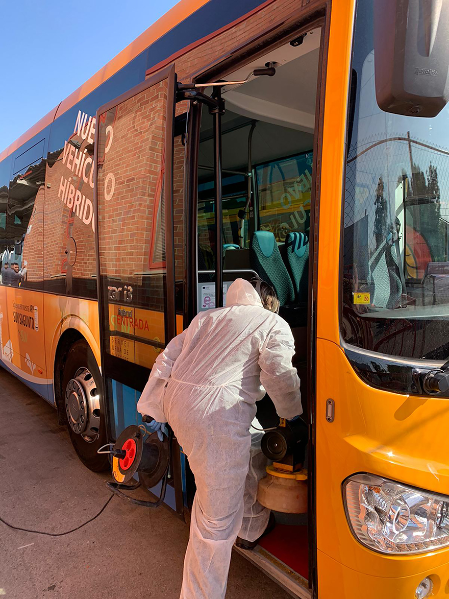 L'Ajuntament de Sagunt està duent a terme diferents tractaments de desinfecció d'autobusos i reforç de la seua neteja. Esta actuació va destinada a destruir i inactivar el coronavirus COVID-19. Esta acció està dins del decàleg de mesures que ha posat en marxa l'Equip de Govern per frenar els contagis en el municipi.