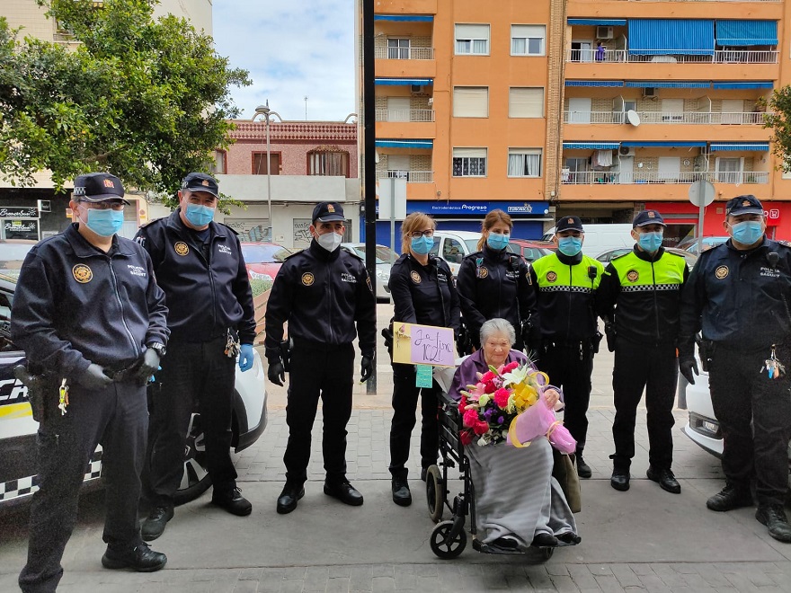 Això demostra que en el nostre municipi s'està portant un bon control tant per part dels responsables de les residències, com per part de la Policia Local, per a evitar que hi haja qualsevol problema que afecte este sector. Continuarem preocupant-nos i seguint amb esta labor», ha assegurat Moreno, qui també ha aprofitat l'ocasió per a felicitar en nom de tot l'Ajuntament de Sagunt a Teresa, una usuària de la Residència La Mar que ha complit 102 anys i a la qual la Policia Local va felicitar presencialment.