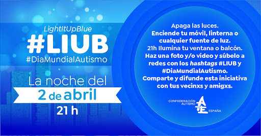 Por este motivo, en reconocimiento a la labor del profesorado y las orientadoras y orientadores, a los chicos y chicas con espectro autista, a las familias y las personas que tienen este problema, «nos sumamos e invitamos a toda la ciudadanía a sumarse, desde casa, a la campaña internacional 'Light It Up Blue', #LIUB, para iluminar la noche de azul a las 21.00 h., como muestra de solidaridad con el colectivo de personas con TEA».