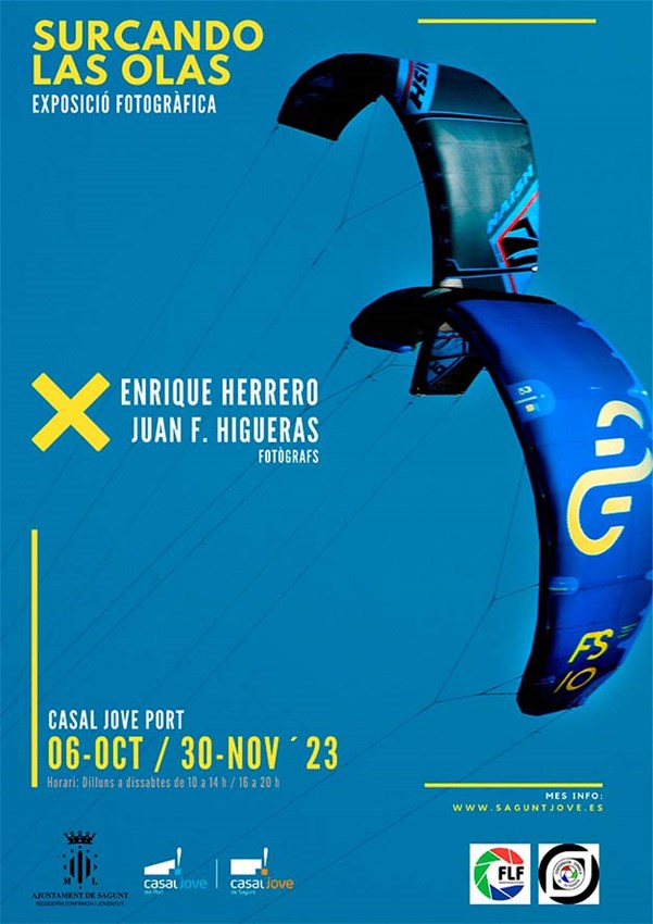 L’exposició fotogràfica Surcando las olas, d’Enrique Herrero i Juan Francisco Higueras, s’instal·larà en el Casal Joven del Port (carrer Vent de Marinada, s/n) del 6 d’octubre al 30 de novembre, en la qual els autors traslladen la seua visió d'un esport aquàtic tan acolorit com és el surf, windsurf i el kitesurf mitjançant les fotografíes.