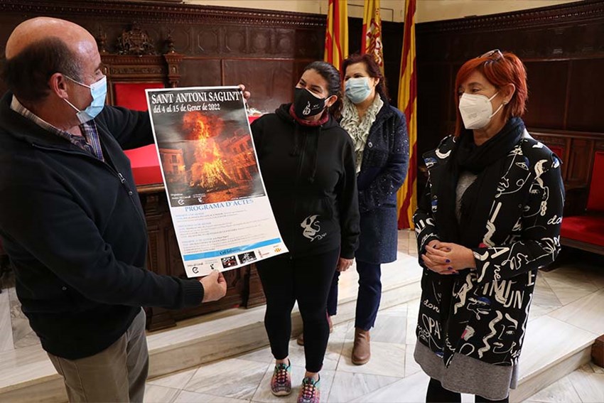 La regidora delegada de Festes i Cultura Popular, Asun Moll, ha presentat este dijous, en el Saló de Plens de l'Ajuntament, el programa d'actes a celebrar. També han assistit a la presentació representants d’Amics del Cavall i La Diabòlica de Morvedre, que organitzen amb l'Associació Sant Antoni Sagunt i l’Asociación Porteña Hoguera de San Antón les diferents activitats que es desenvolupen en els dos nuclis de la ciutat, en col·laboració amb la delegació de Festes i Cultura Popular. El programa de festes de 2022 comença demà, divendres, 14 de gener, i es prolongarà fins al dia 30.
