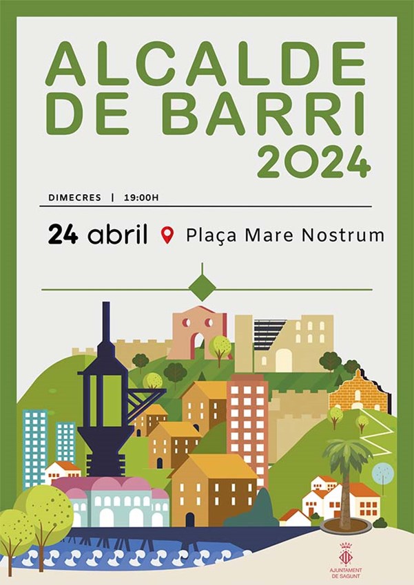 Alcalde de Barri és una idea impulsada pel departament de Participació Ciutadana i l'Alcaldia de l'Ajuntament de Sagunt que consistix en trobades públiques per part de l'alcalde amb associacions, entitats i la ciutadania en general, així com amb totes aquelles persones que tinguen interés a parlar sobre assumptes concrets del barri en qüestió. En esta segona edició d'Alcalde de Barri s'ha dissenyat un recorregut en el qual visitarà 35 llocs diferents de la ciutat.