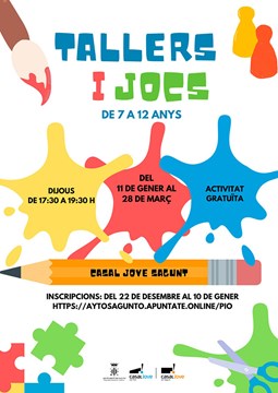Finalment, els tallers i jocs programats que estan dirigits als i les joves d'entre 7 i 12 anys es faran els dijous de 17.30 a 19.30 hores al Casal Jove del Port de Sagunt des de l'11 de gener fins al 28 de març.