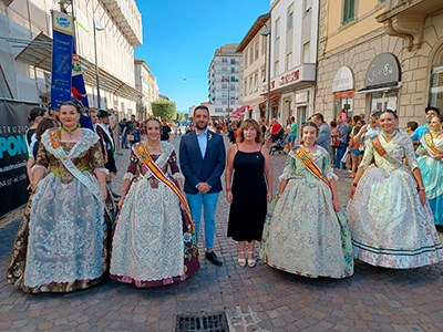 La comitiva, encapçalada per l'alcalde, la regidora d'Agermanament i les falleres majors i una representació de la Federació Junta Fallera de Sagunt, ha assistit a la desfilada de carrosses i als actes centrals dels festejos